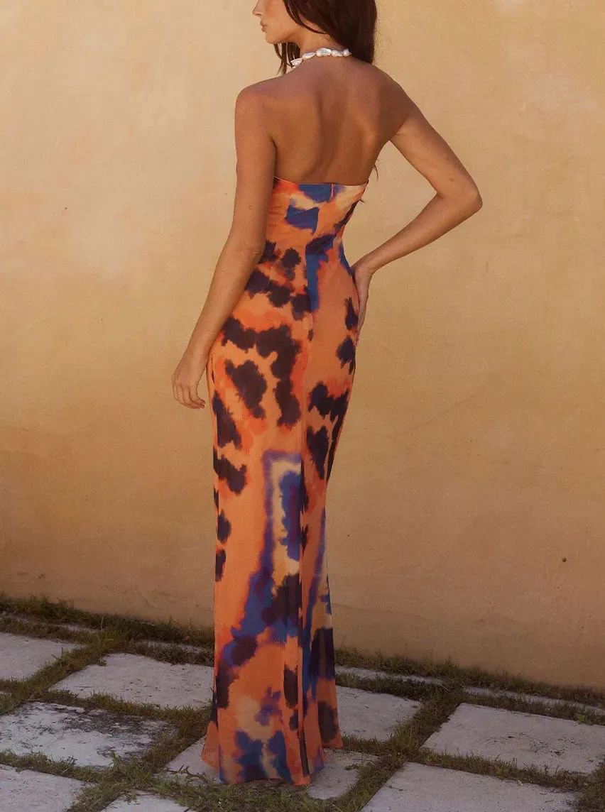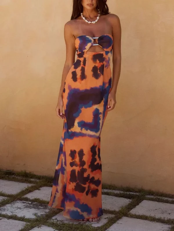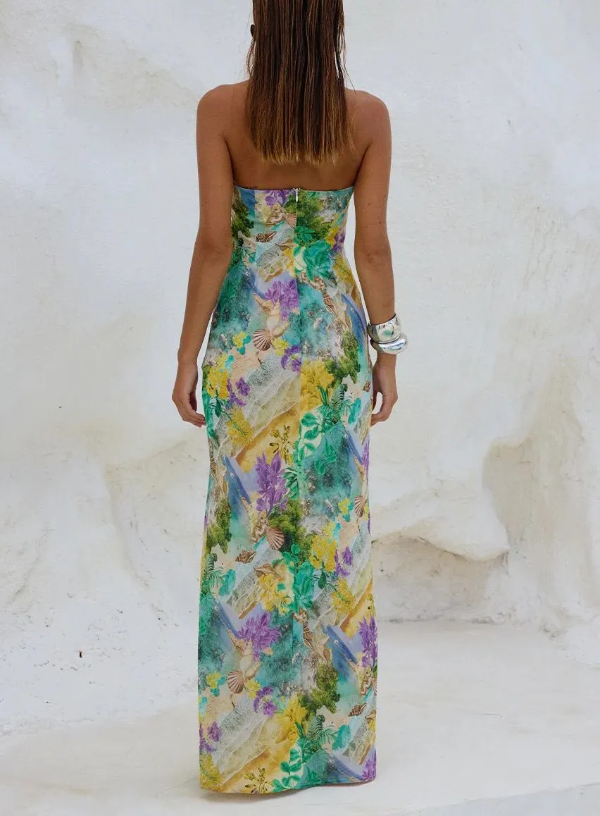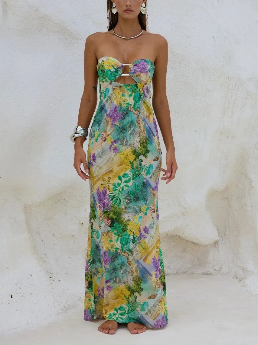 Robe Longue Bandeau Strapless Tropical