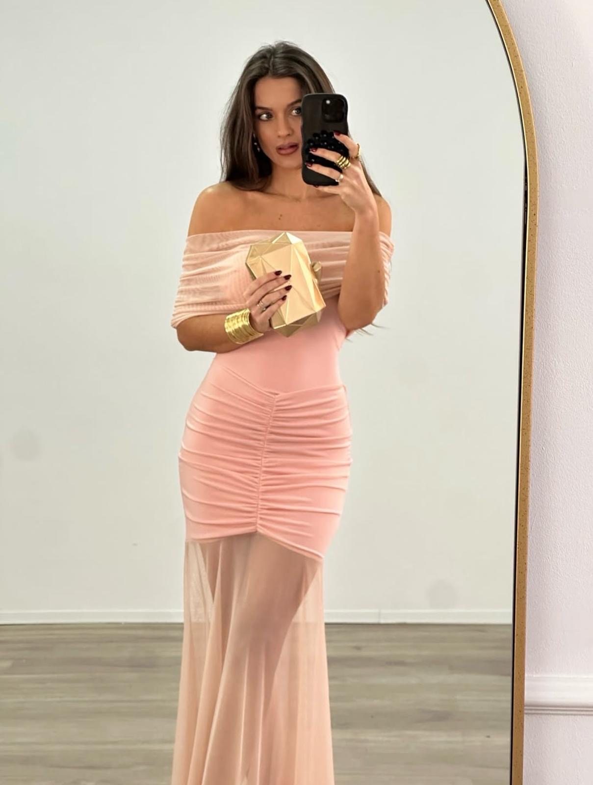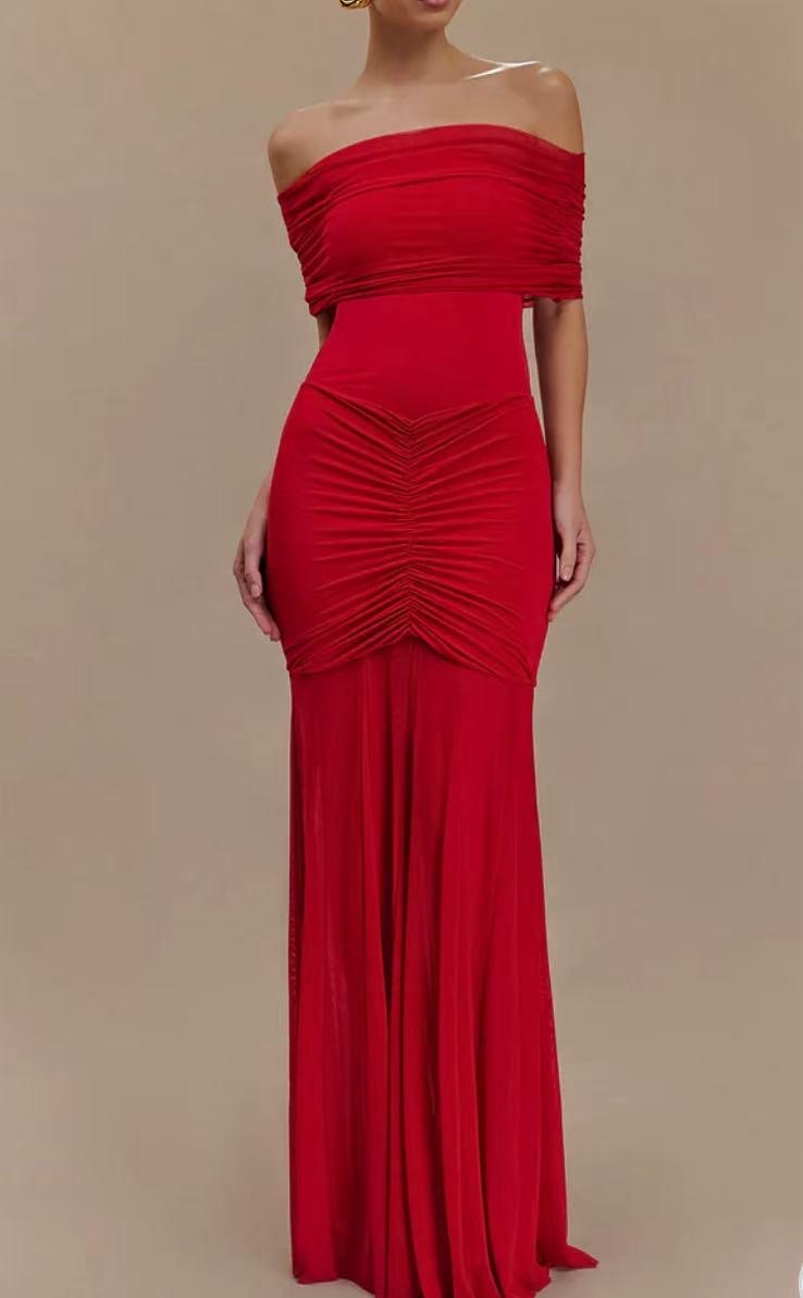 Robe Longue Plissée a Épaules Denudées Yana