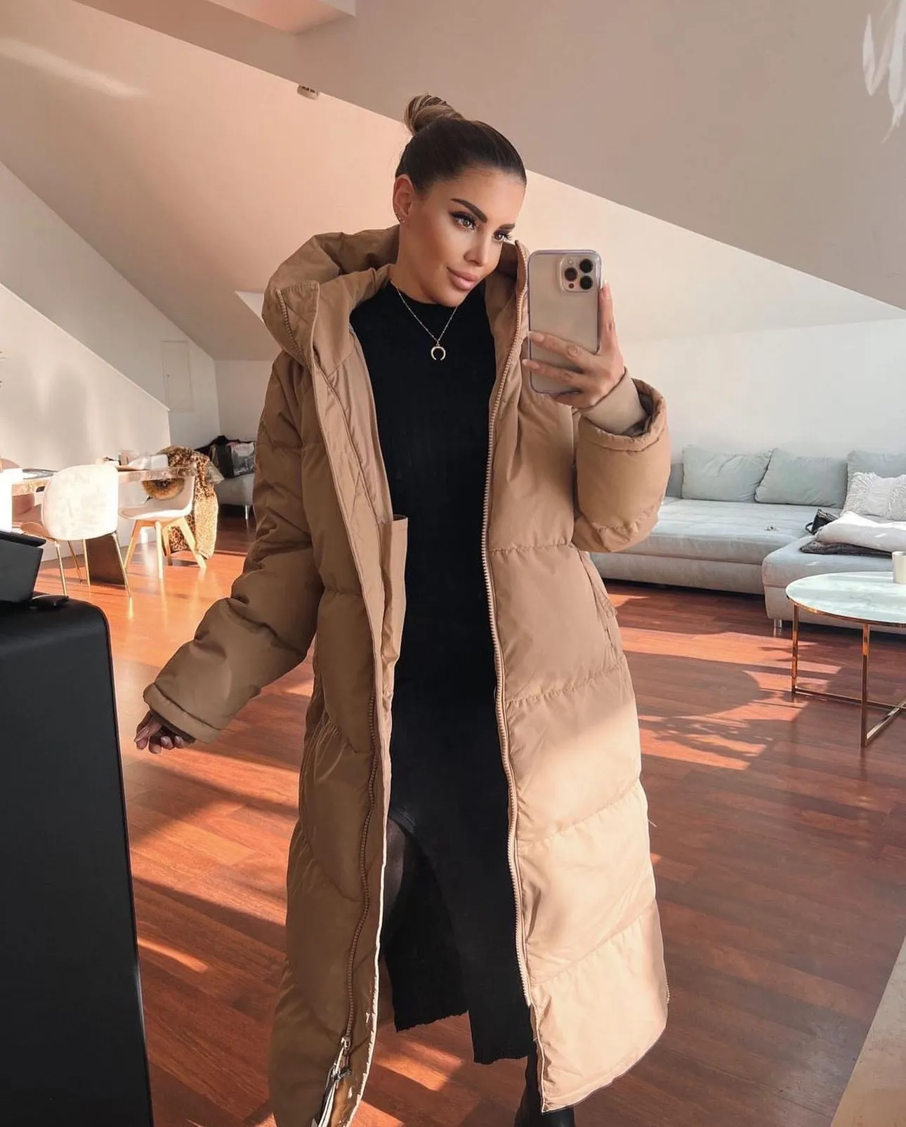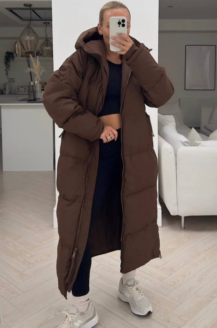 Doudoune Longue Matelassée à Capuche Aurora